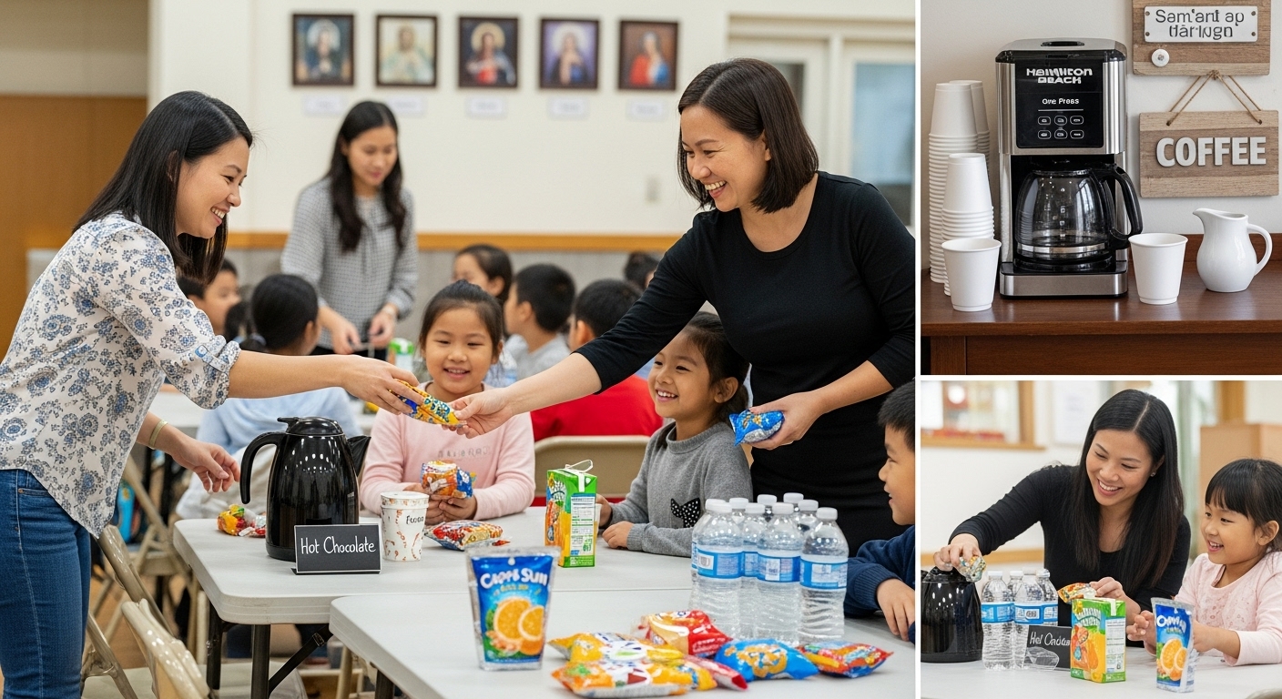 Mỗi tuần, hai phụ huynh sẽ được phân công hỗ trợ các công việc được liệt kê bên dưới. Mục tiêu chính là tạo một môi trường học tập tuyệt vời cho các em, đảm bảo đủ đồ ăn nhẹ và nước uống trong giờ giải lao, đồng thời giữ lớp học sạch sẽ để chuẩn bị cho buổi học tiếp theo.